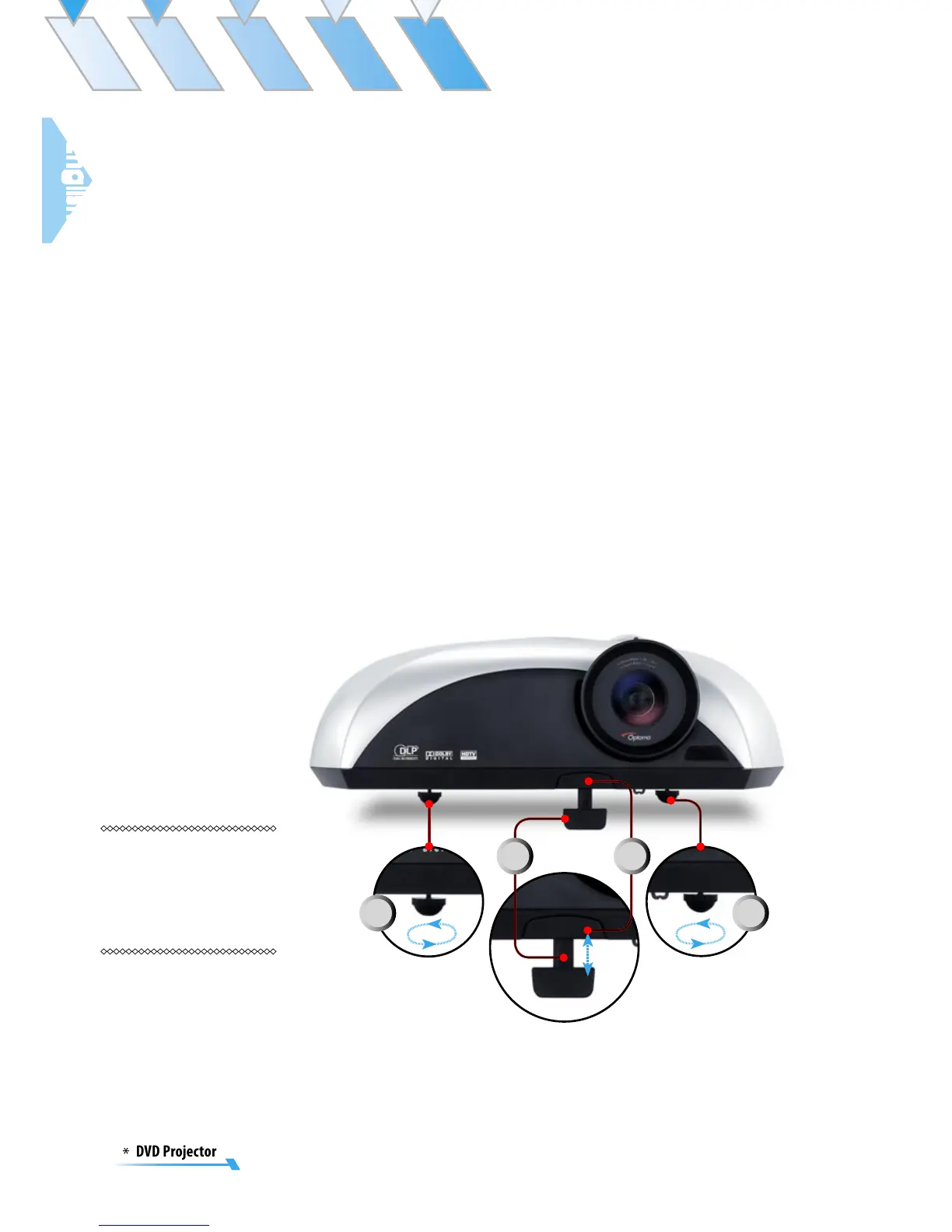 The projector is equipped with three adjustable feet to modify