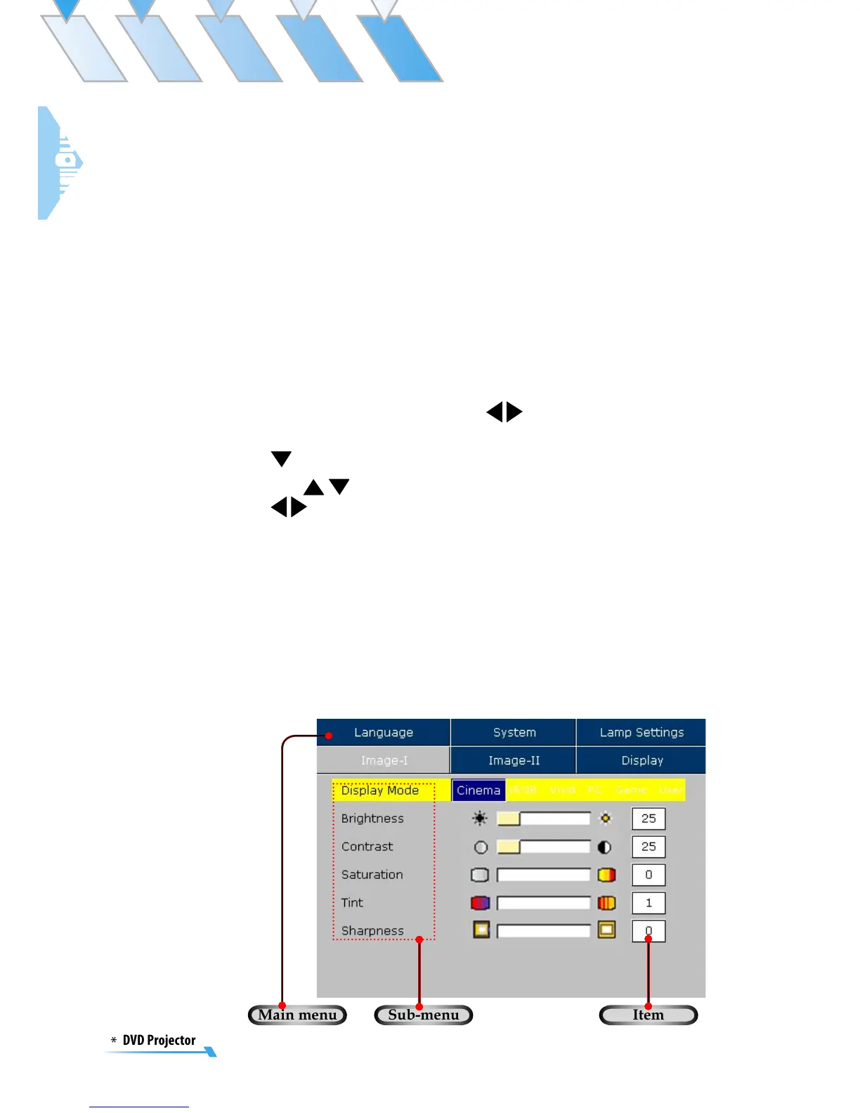 1. To open the OSD menu, press [Projector Menu] on the Remote Con-