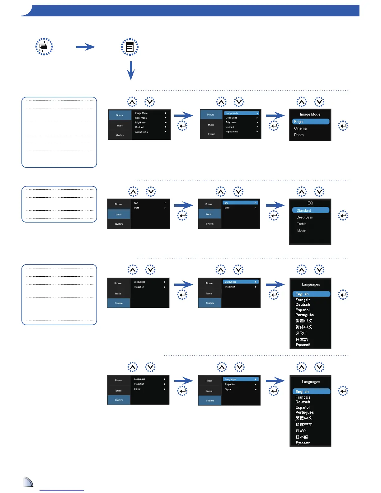 HO W T O US E T H E ME N U - SO U R C E : HDMI, CO M P O S I T E AV (AV IN), VGA