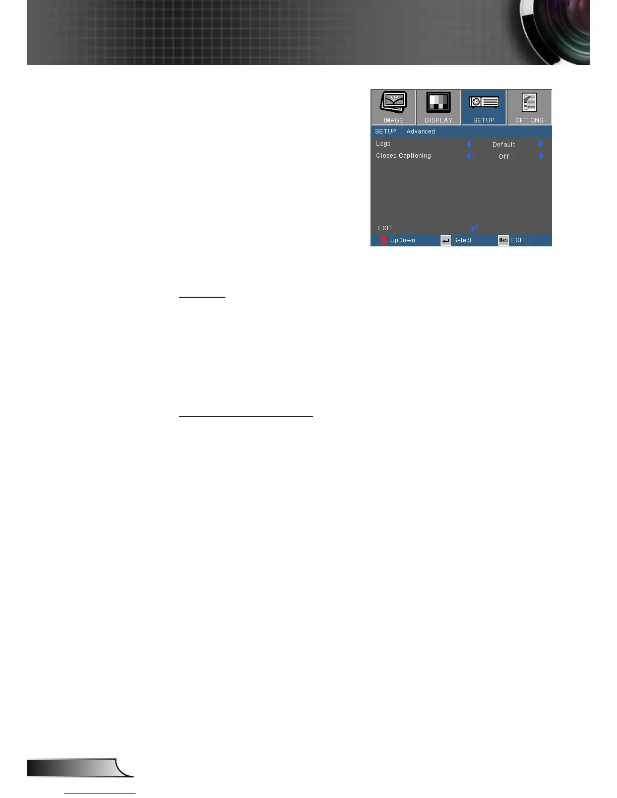 Off: select “off” to turn off the closed captioning feature.