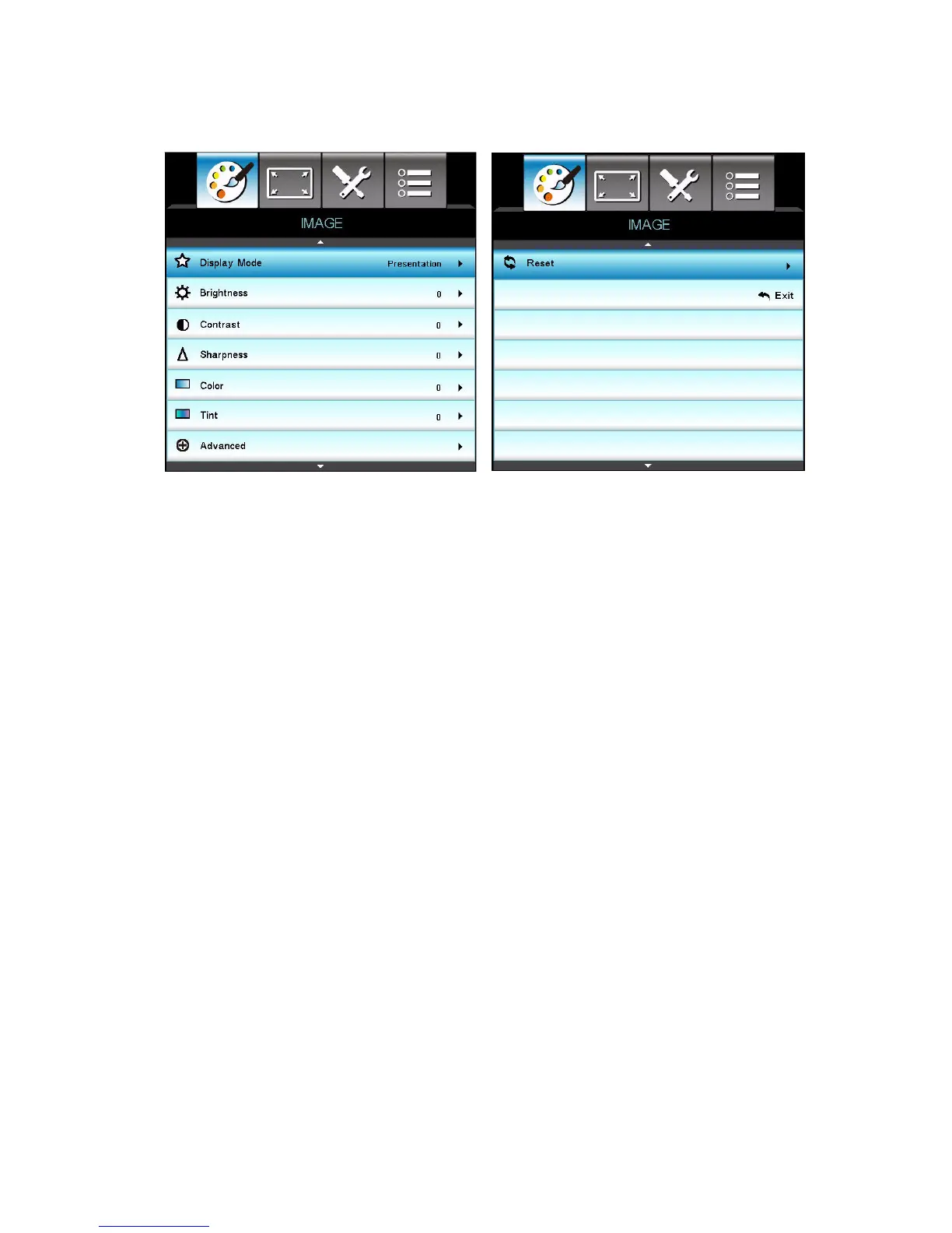 settings when projecting onto a blackboard (green).