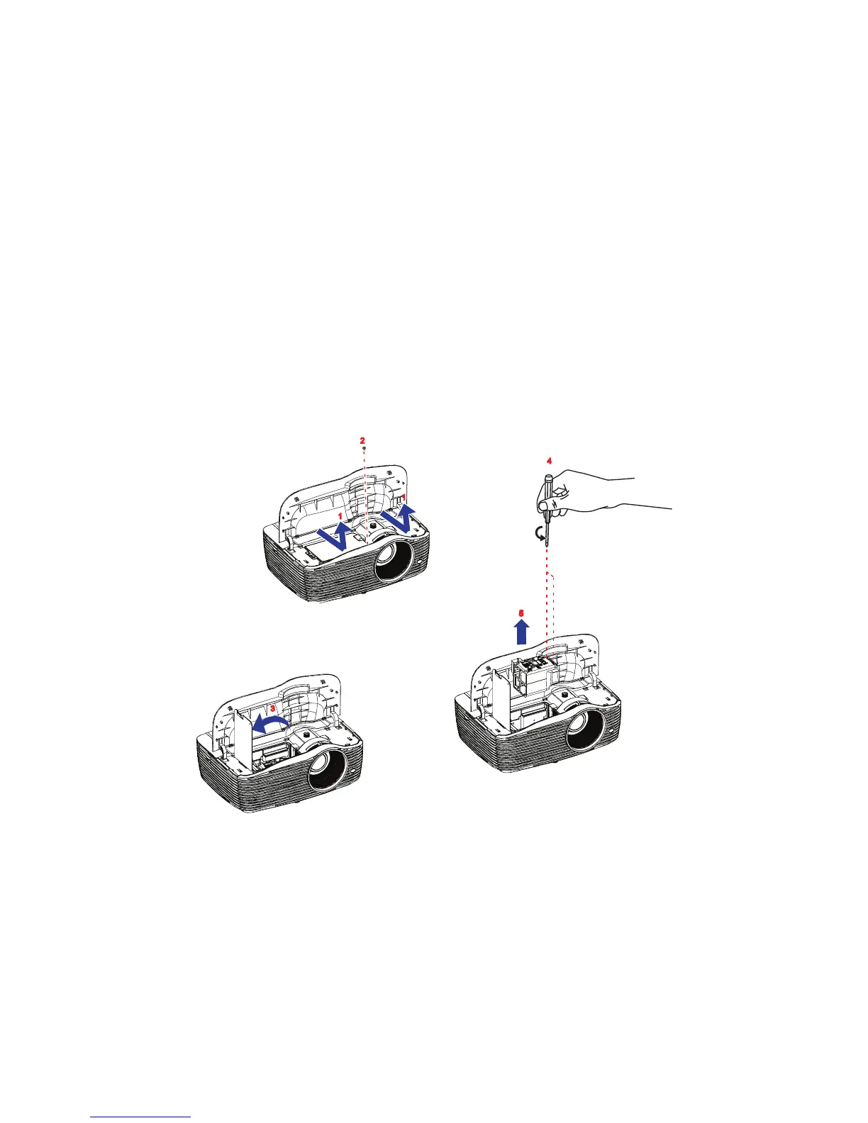 6. Raise the handle and pull out the lamp module slowly and carefully. 5