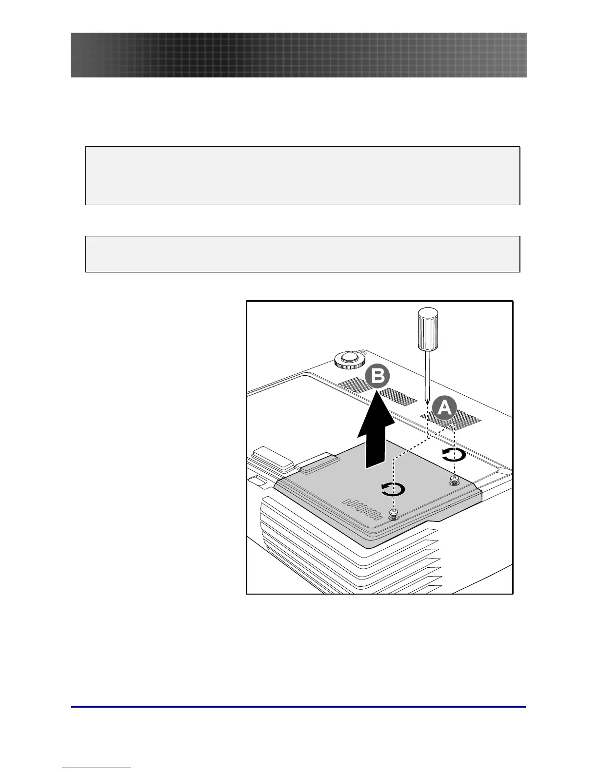 Be sure to turn off and unplug the projector at least an hour before replacing the lamp. Failure to do