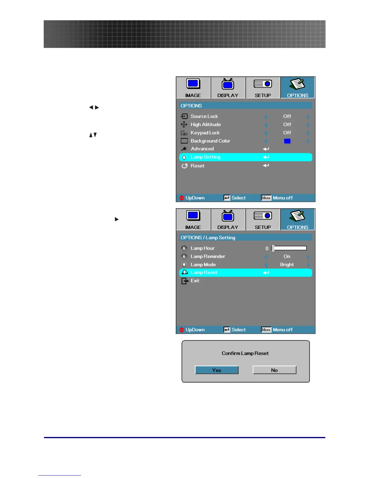 Navigate down to Lamp Reset