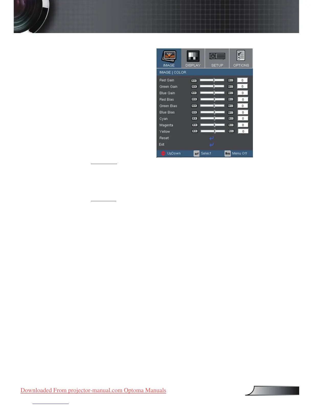 Select the Red/Green/Blue Gain for brightness adjustments and