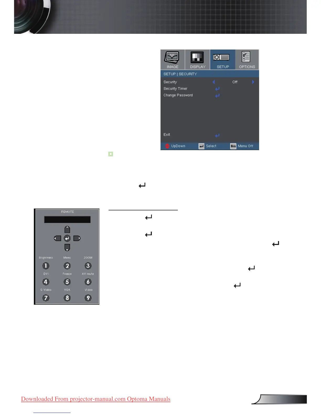 2.Usenumberbuttonsontheremotetoselectyourpassword,andthen