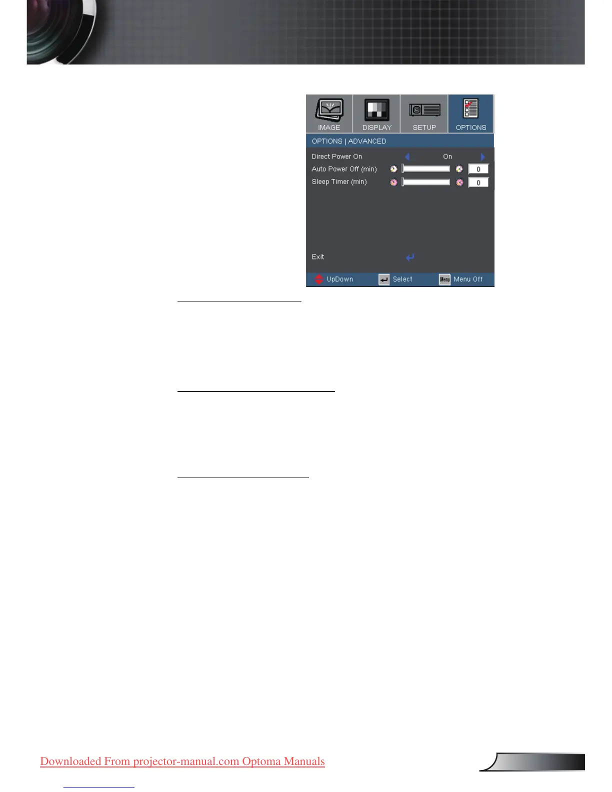 Choose “On” to turn on Direct Power On mode. The projector