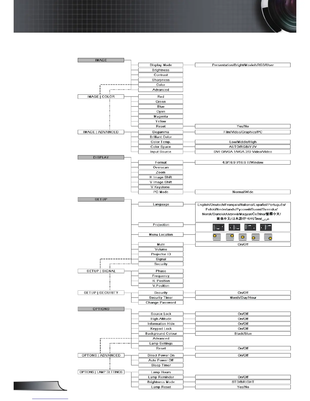 Optoma EP761 - Menu Tree