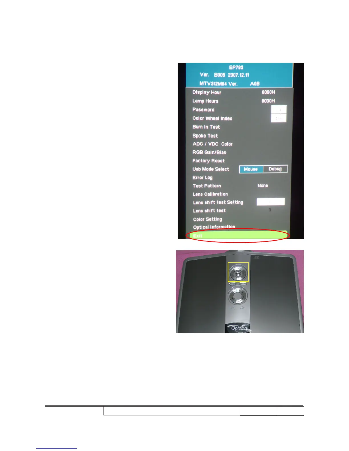Note: Left key = decrease lamp hour