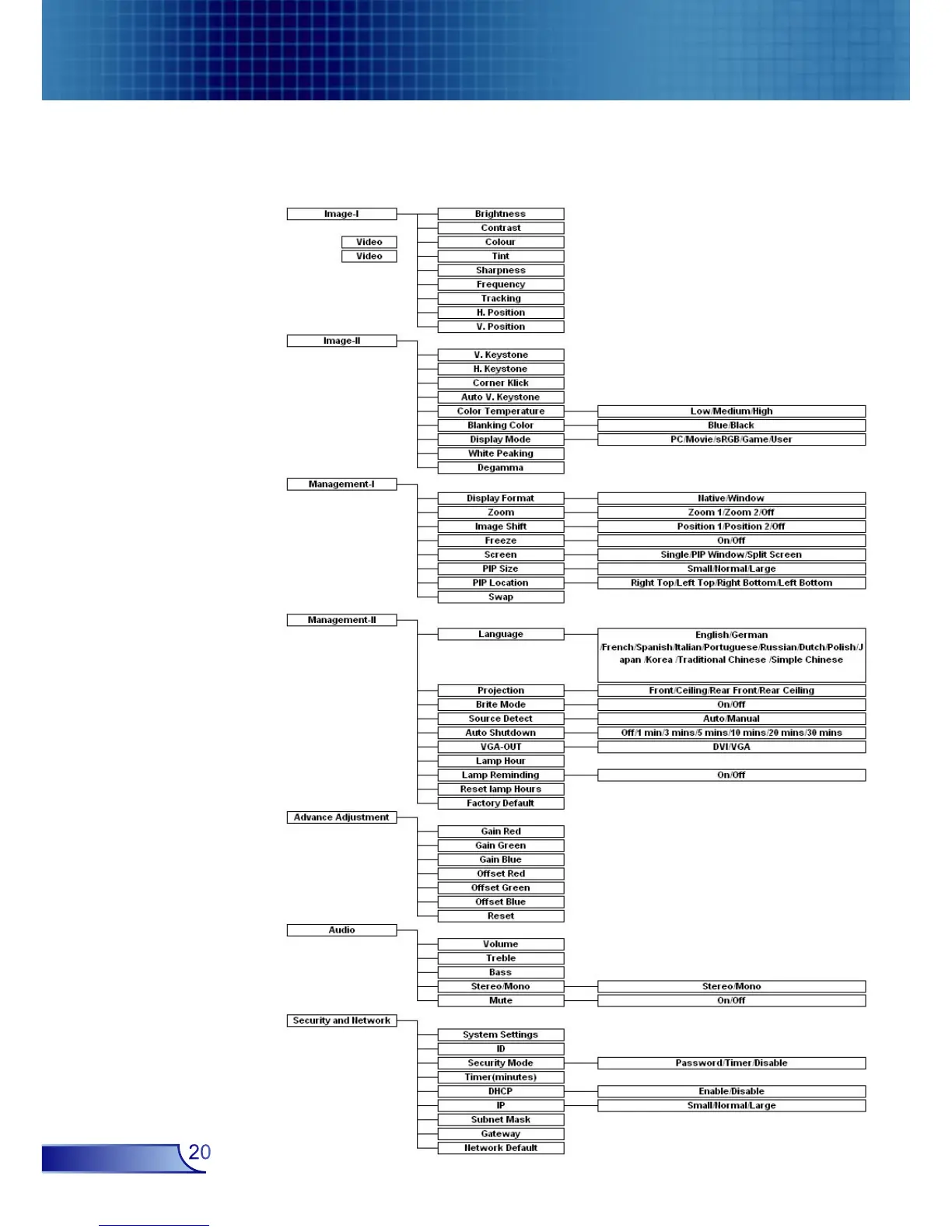 Optoma EP910 - Menu Tree