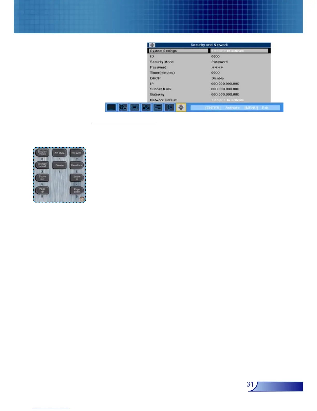 ■ Off: When user switch on projector without password.