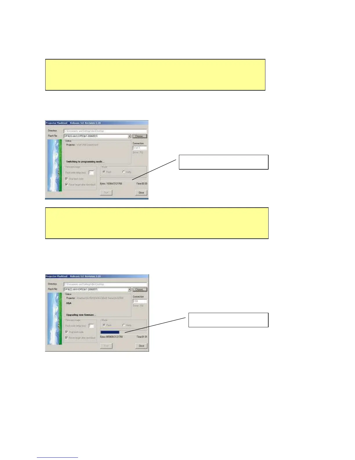 Note: According to the Flash technology, the old firmware will be erased first. Therefore, Flash-Tool will