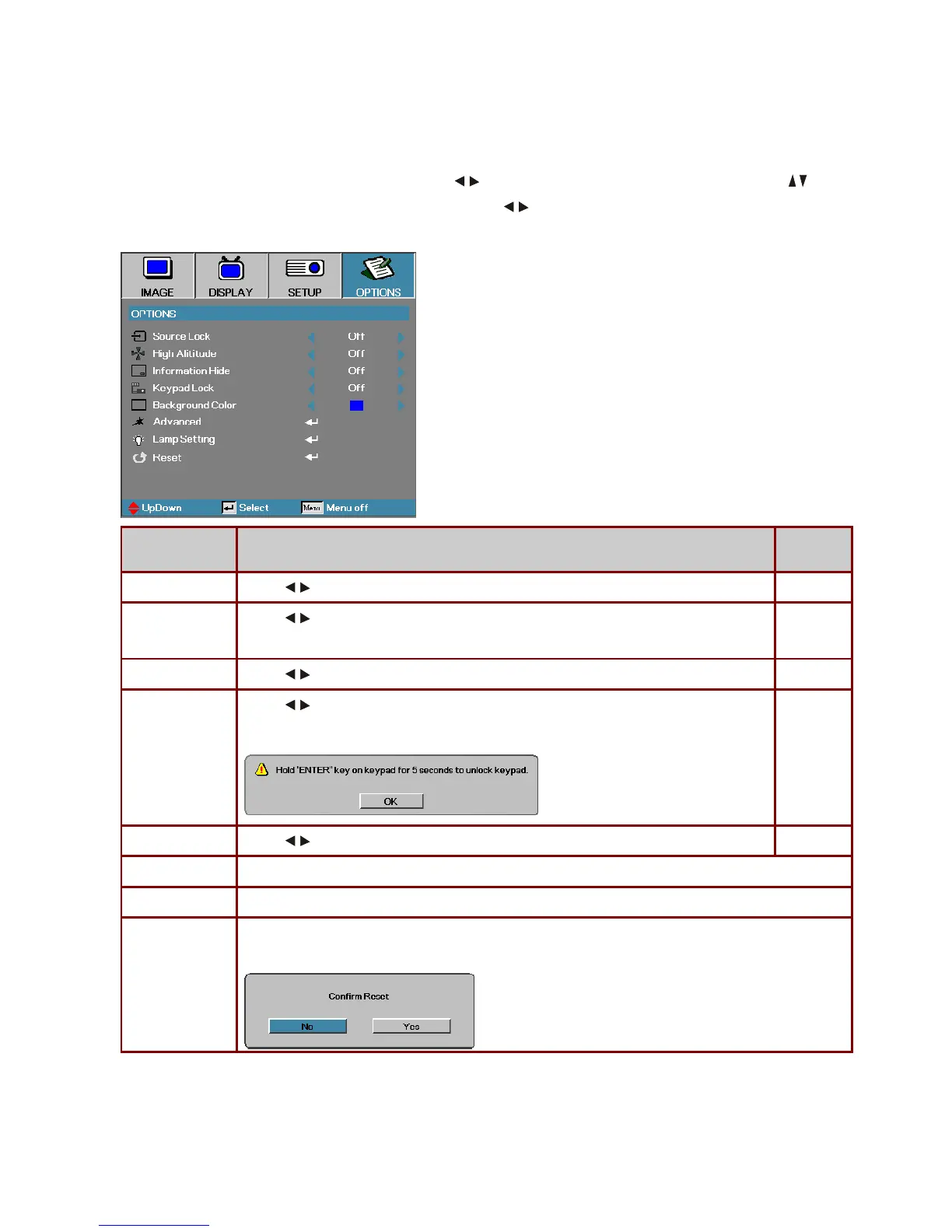 OPTIONS/Lamp Setting