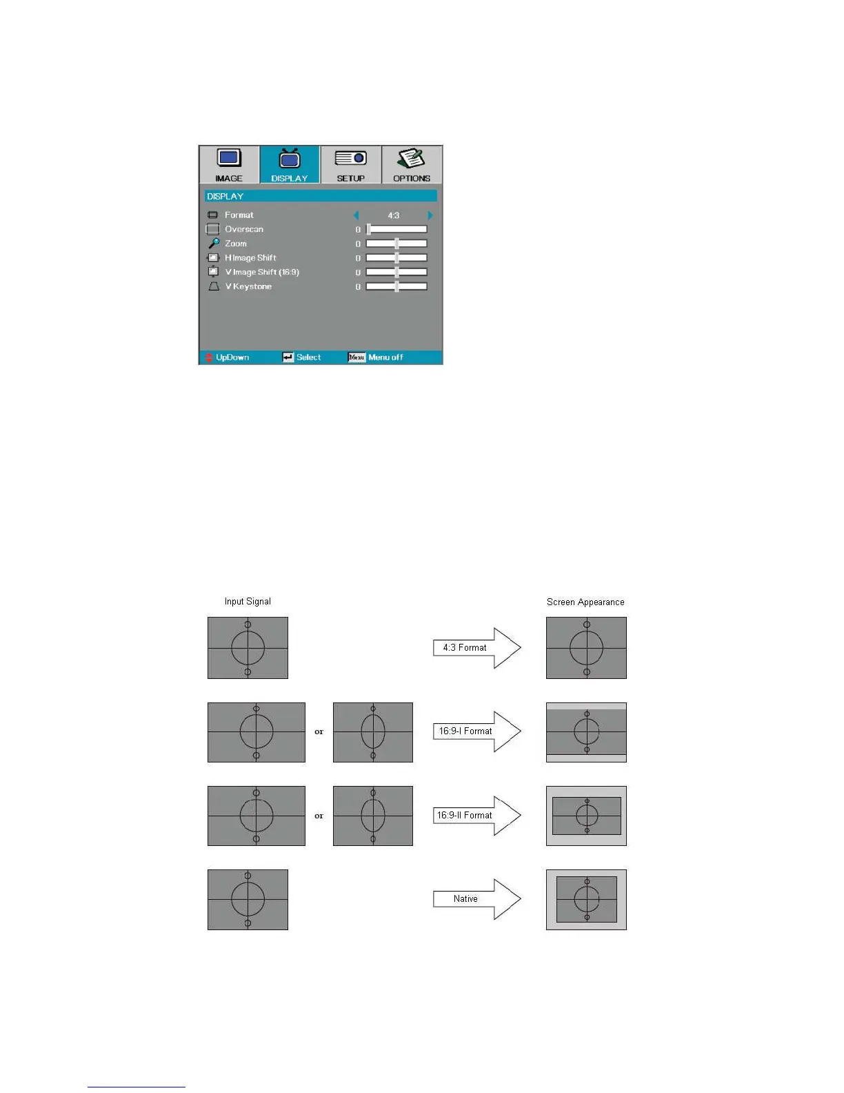 3. 16:9 II: The non-standard wide-screen display format of the projector.