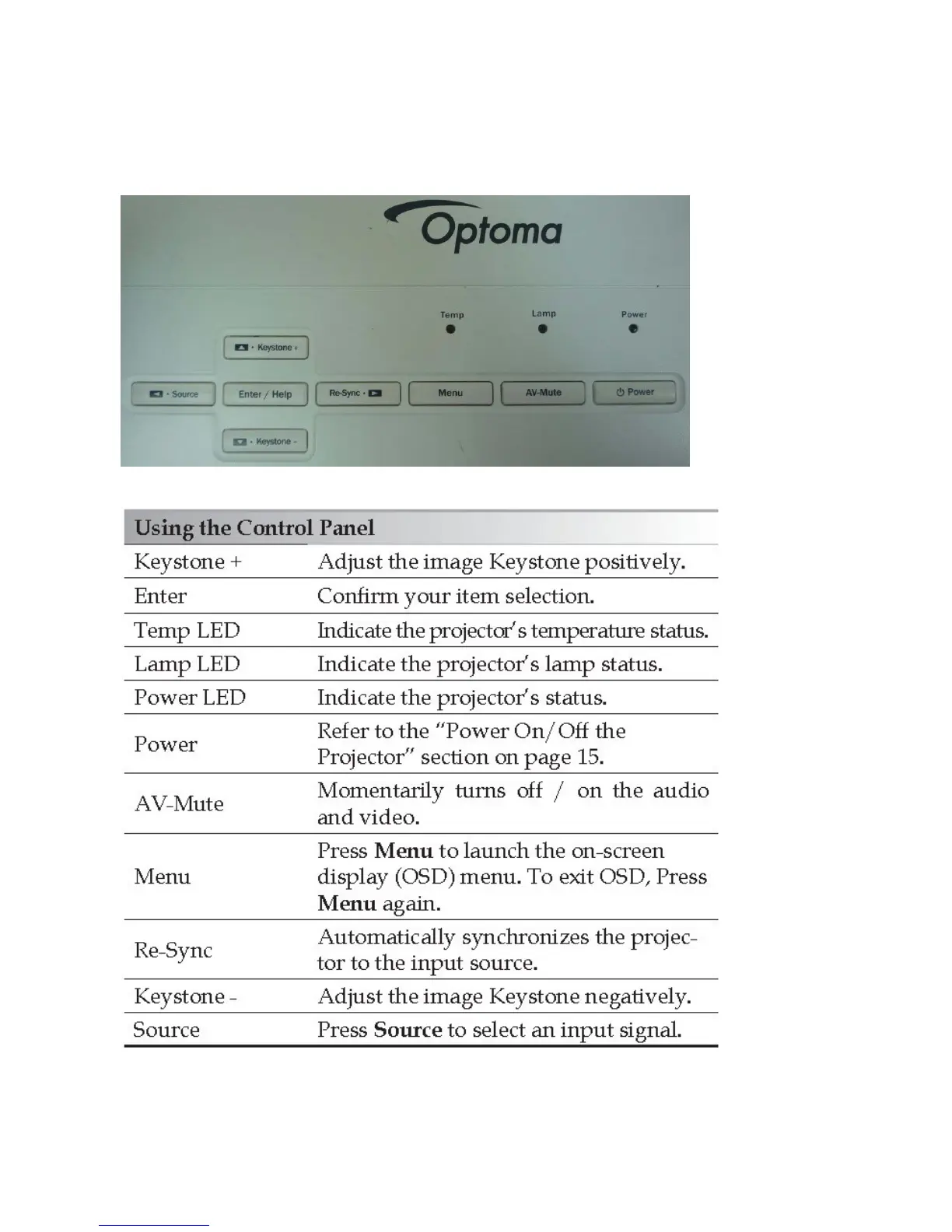 Optoma ES522 - 2-9 Key Pad and LEDs