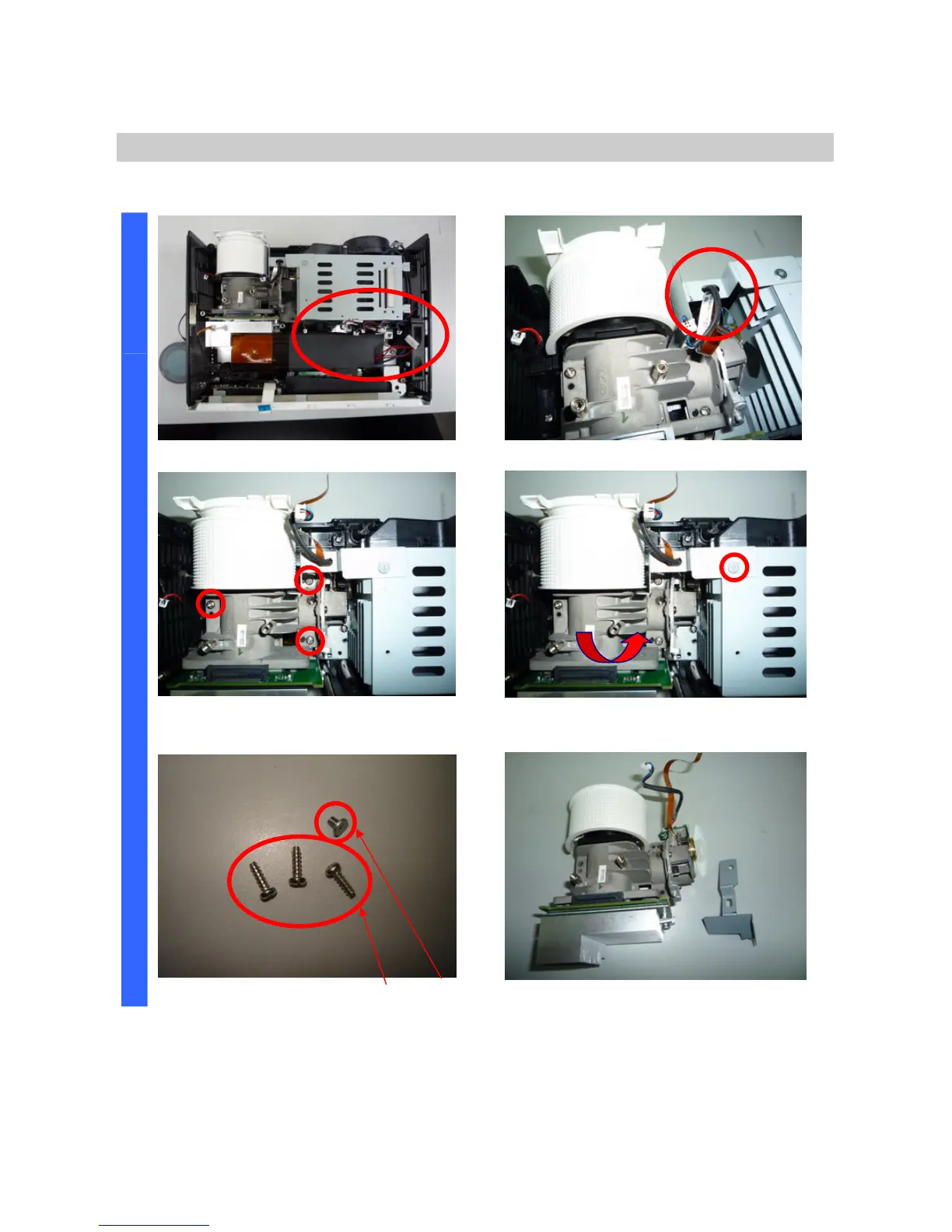 Remove the three screws. Remove the screw and take off the optical