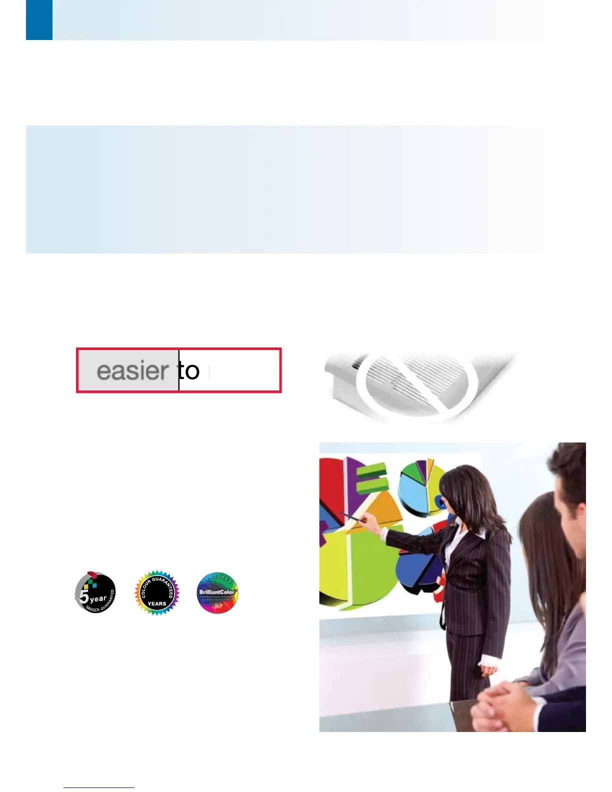 reliability. The filter-free projector design does not require regular filter