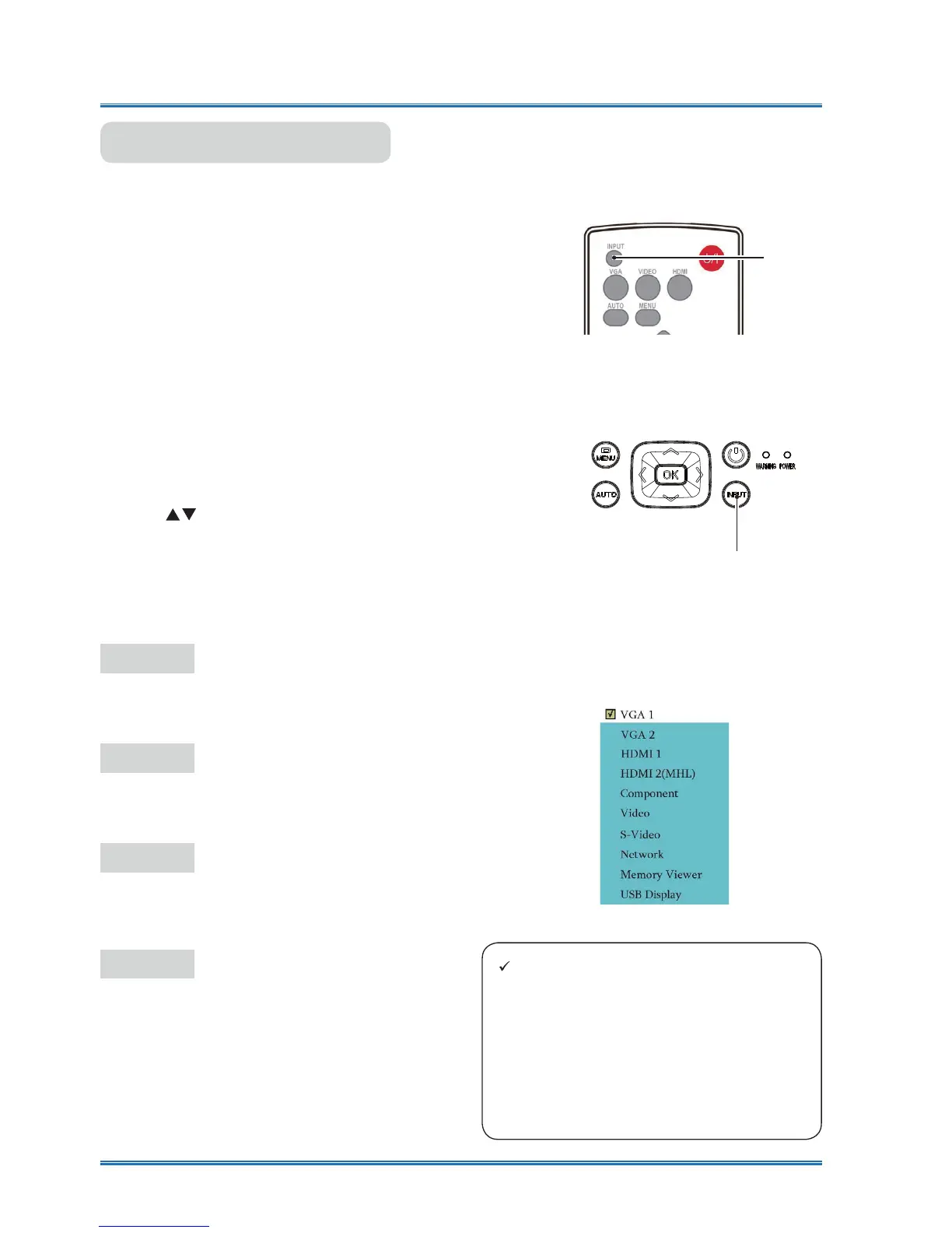 you may press the VGA, HDMI VIDEO button