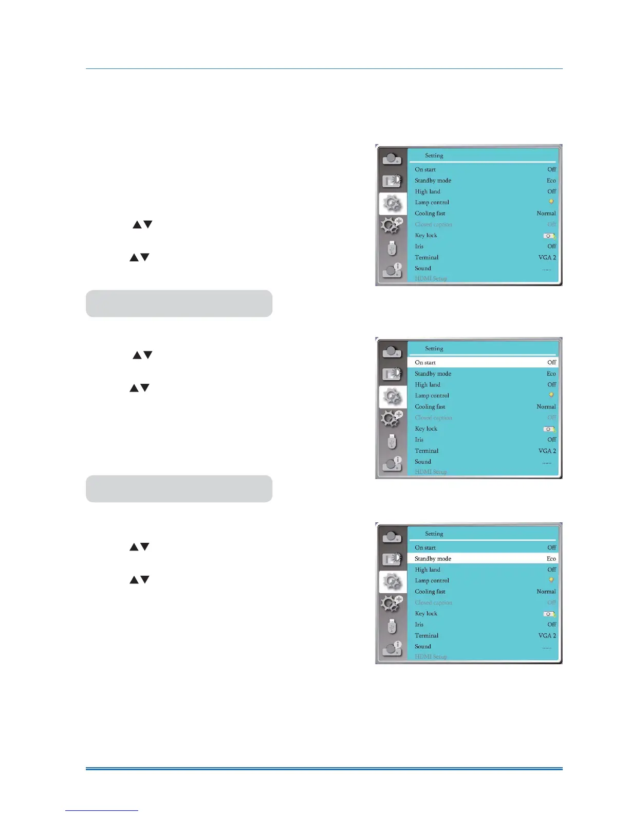 1) Press button to select [Standby mode] menu.