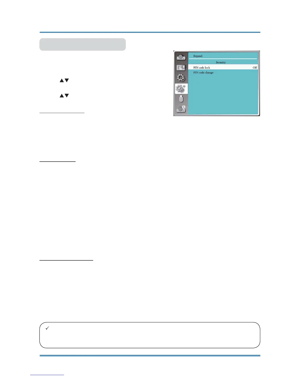 To change the logo screen password protection, press OK button, and the Logo PIN Code