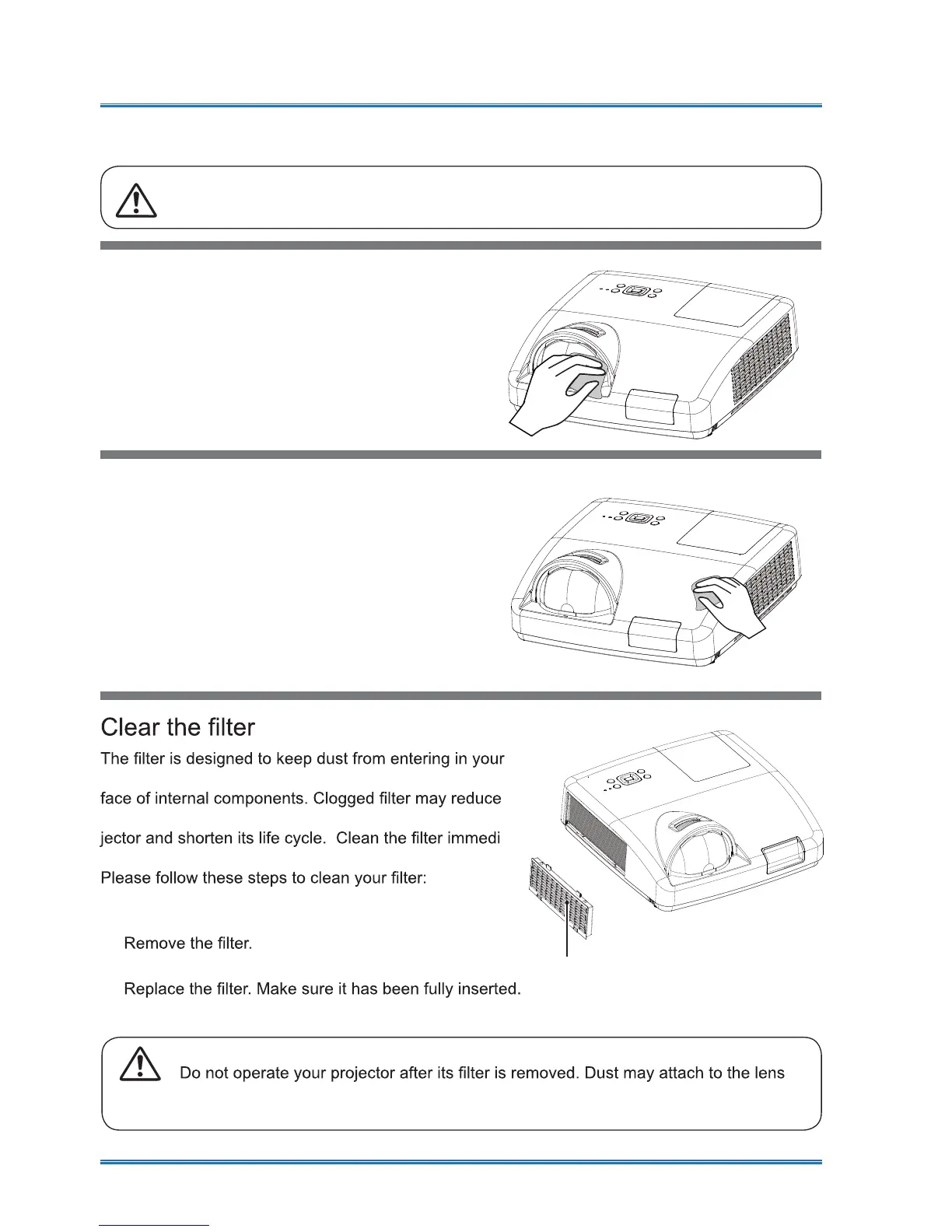 Clean your projector when it is contaminated by foreign matter or its display effects are getting