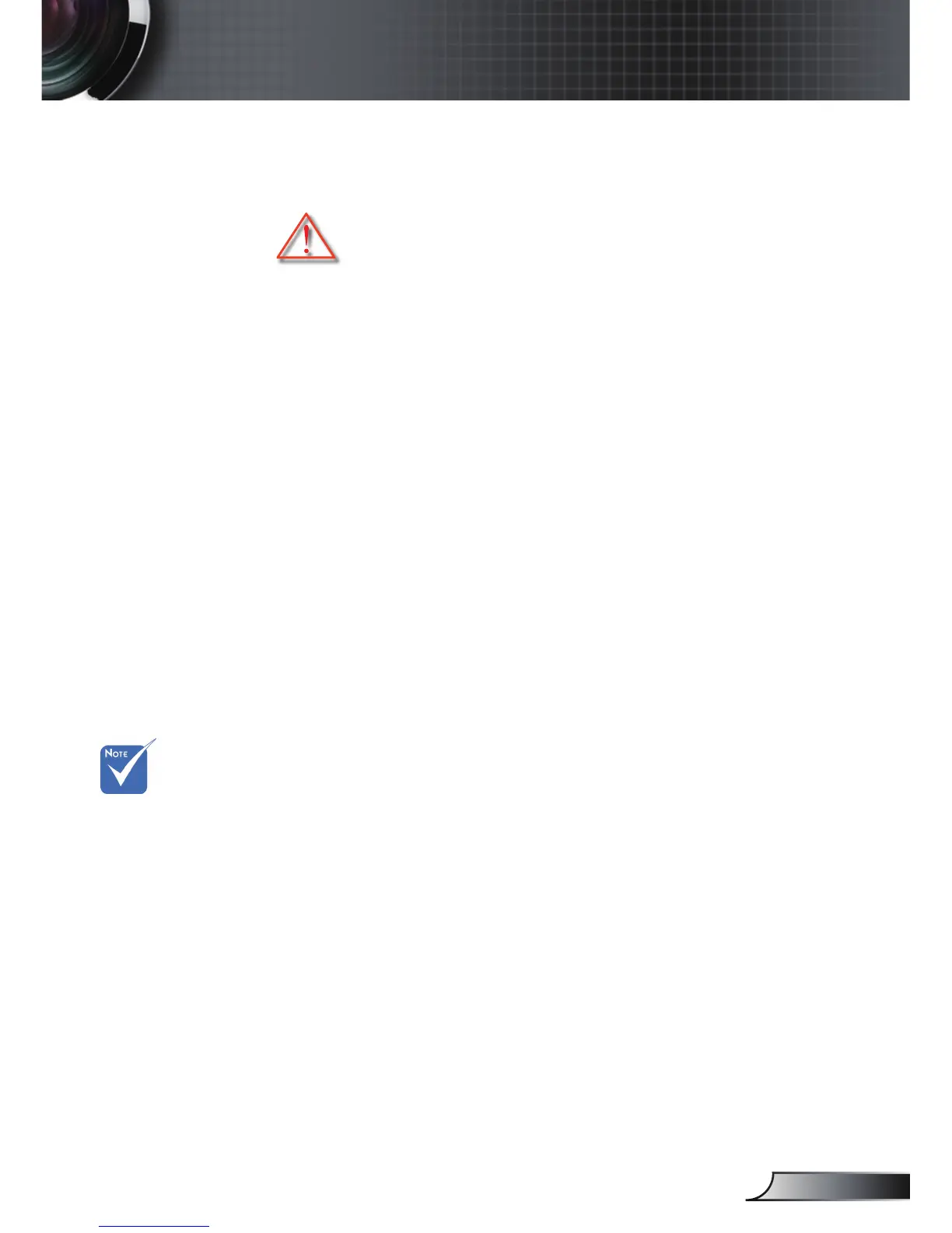 ▀■ Warning- Do not use lens cap when projector is in operation.