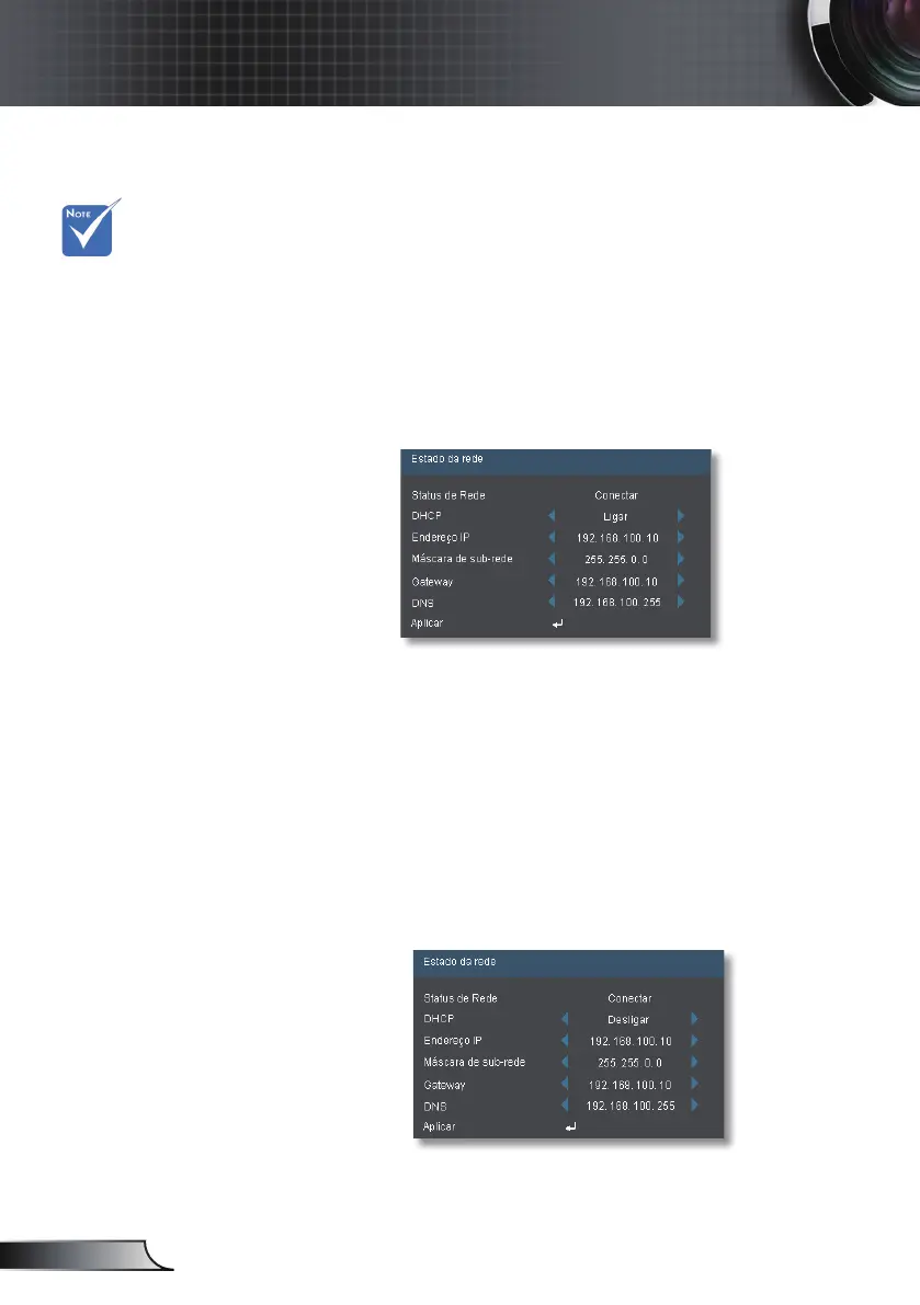 2) Abra o MENU do projetor e vá para CONFIGURAÇÃO | REDE