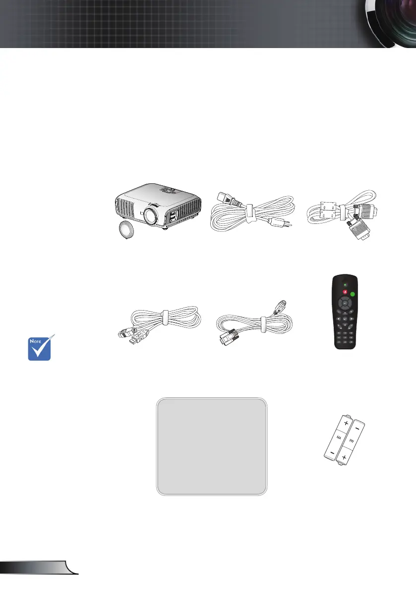 Optoma EX765W - Introdução; Visão.geral.da.embalagem