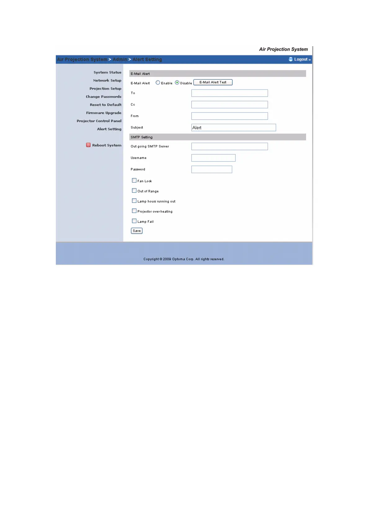 Optoma EX765W - Reboot System; Logout