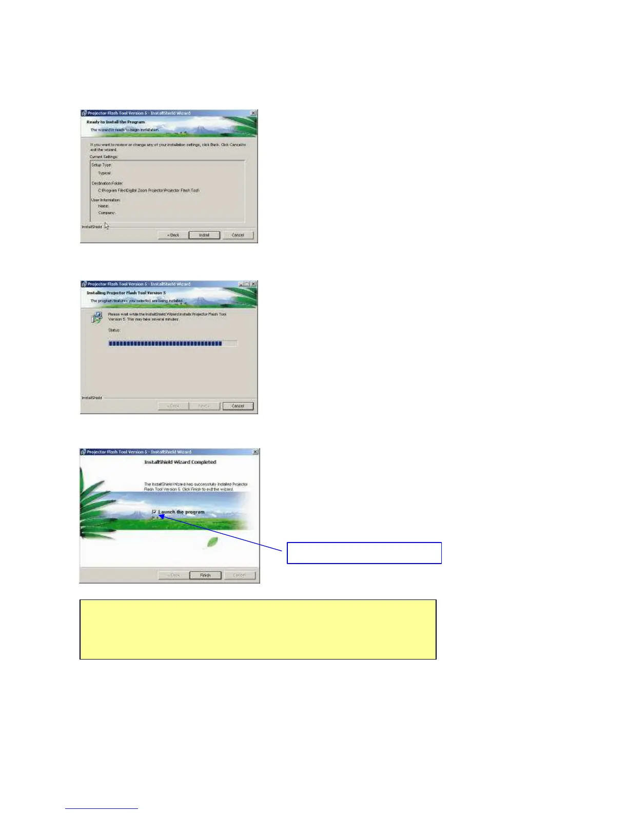 (Step 5) Press the <Finish> button with the “Launch”