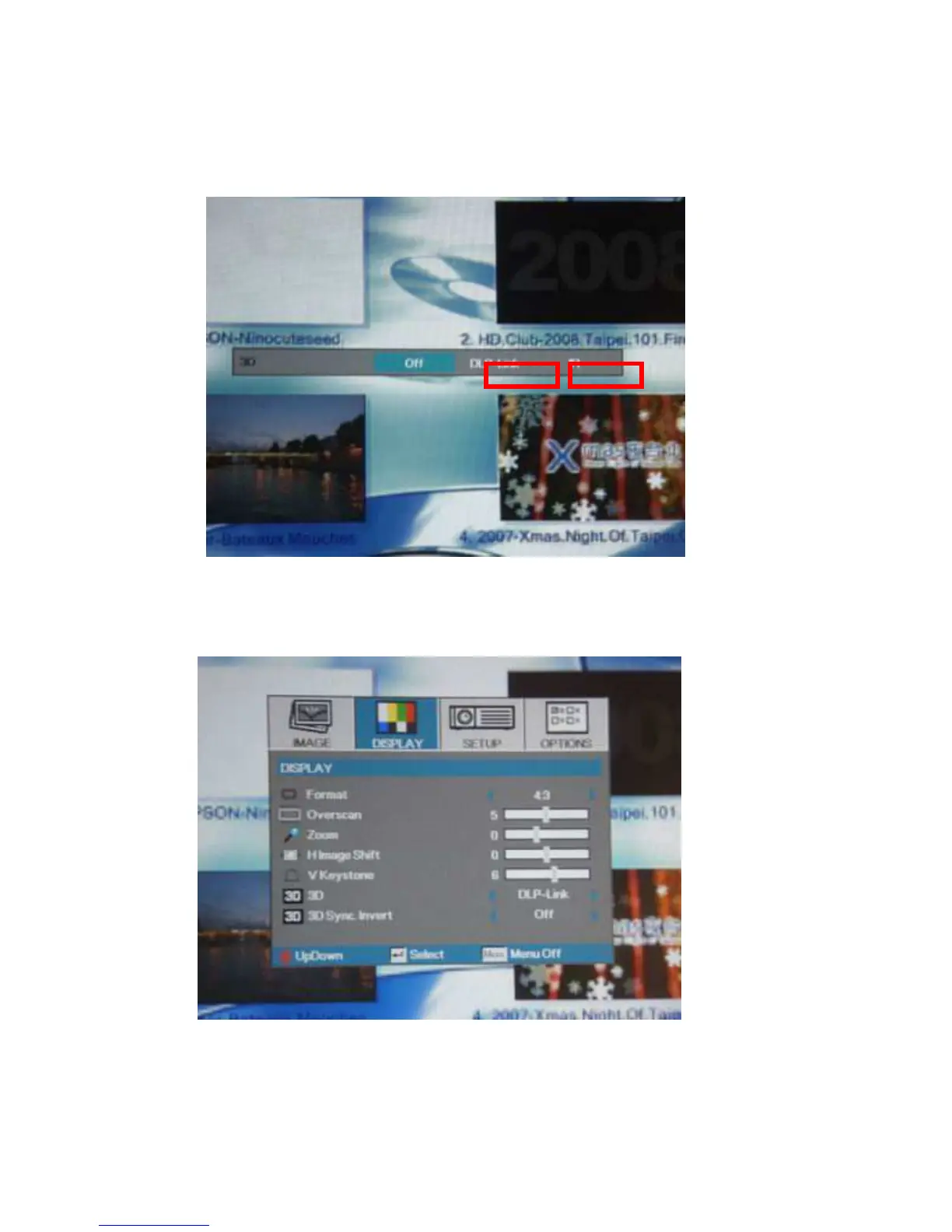 Step 3. Press oron the keypad to select different 3D functions, “DLP-Link” or