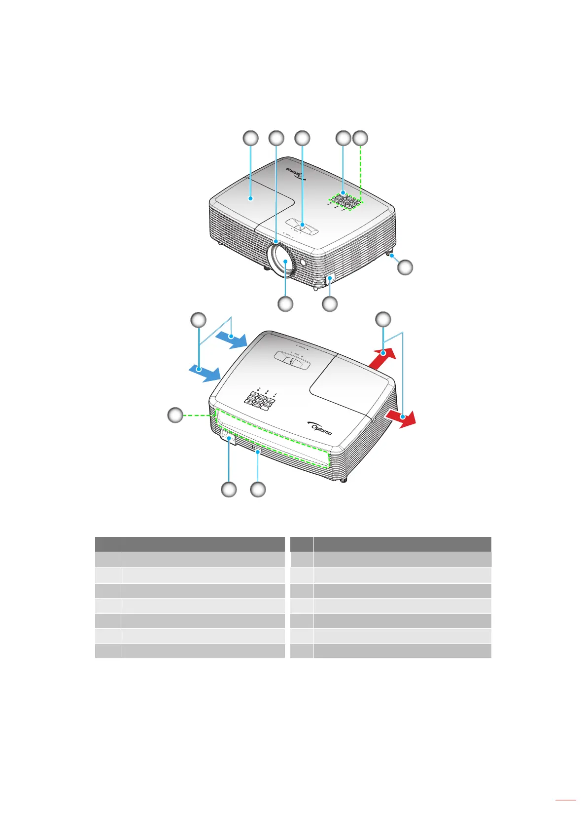Do not block projector inlet or outlet air vents.Note: