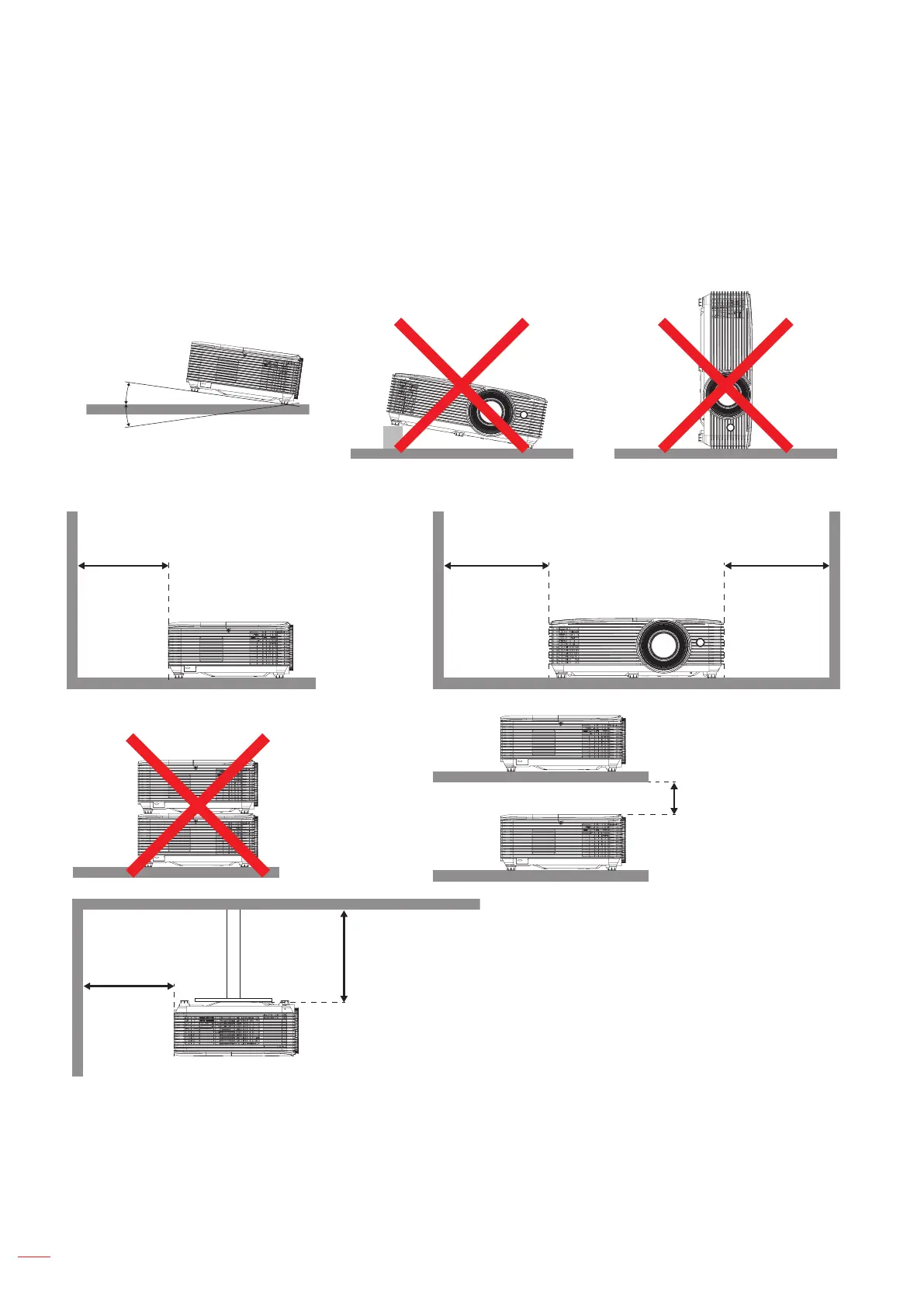 The tilt angle of the projector should not exceed 15 degrees, nor should the projector be installed