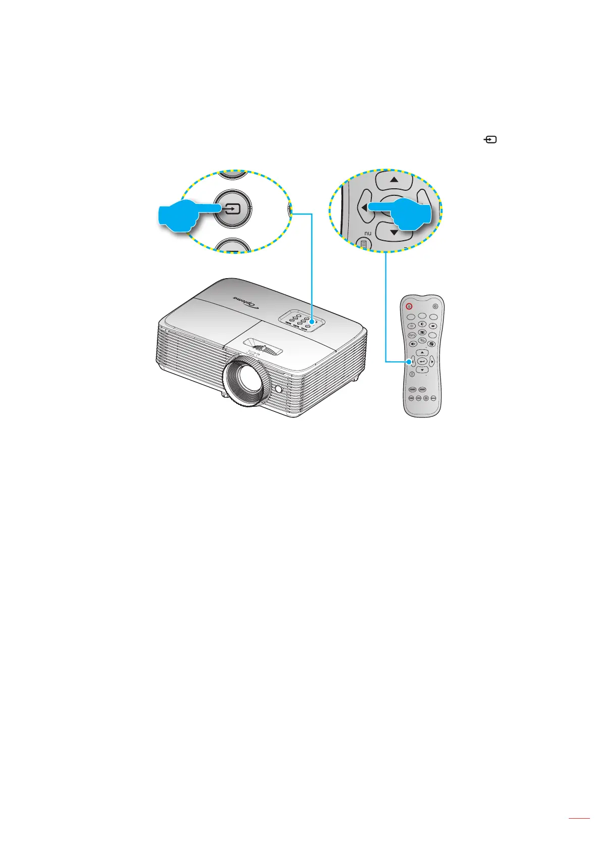 etc. The projector will automatically detect the source. If multiple sources are connected, press the button on