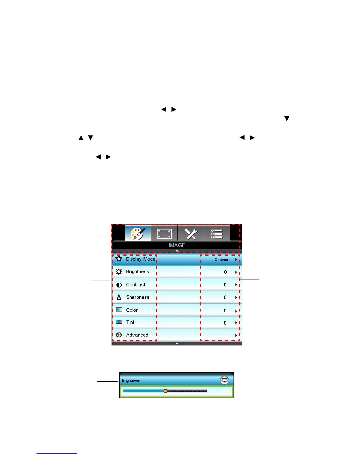 2. When OSD is displayed, use / key to select to select any item in the