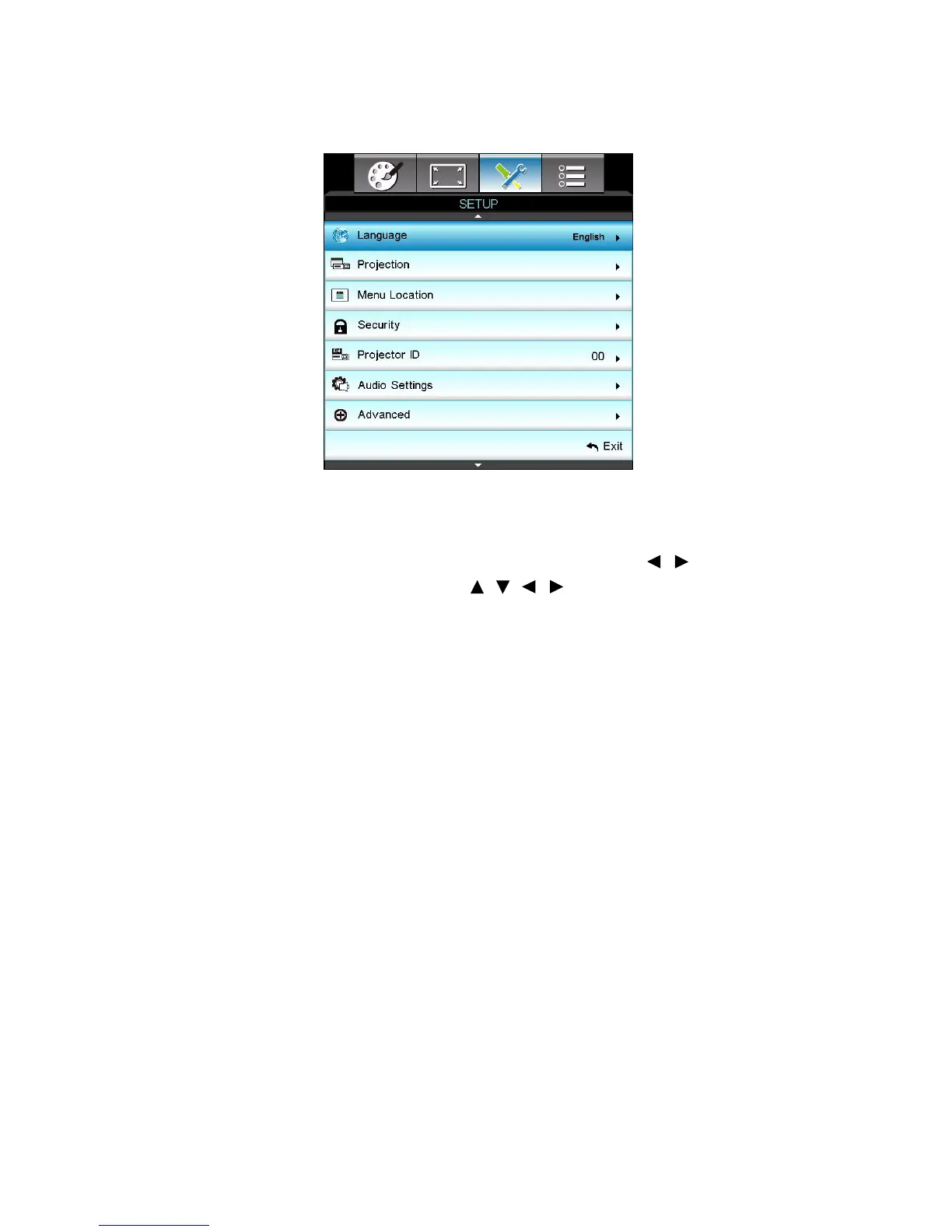 Select the language used by the on-screen menu. Press / /“Enter” key to