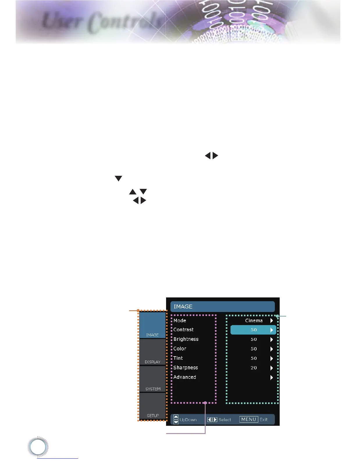 or “Enter” key to enter sub menu.