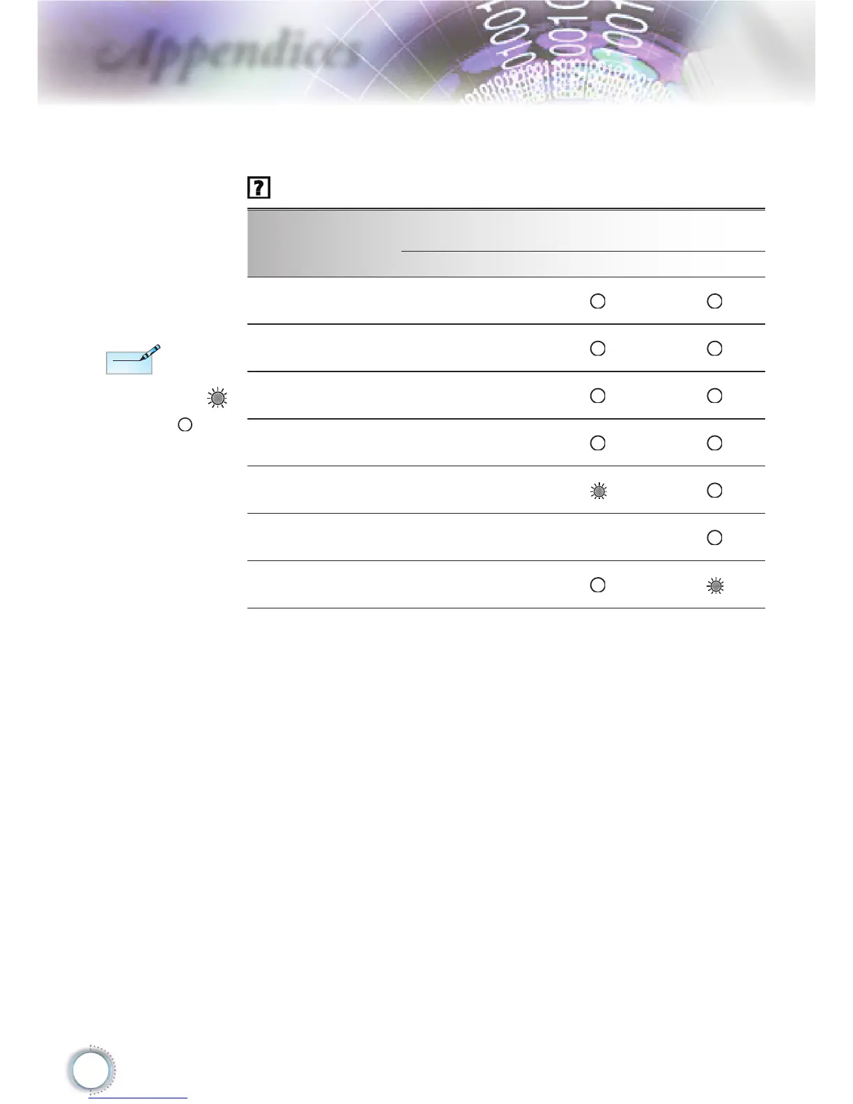 Optoma HD20 - Projector Status Indicators and Messages