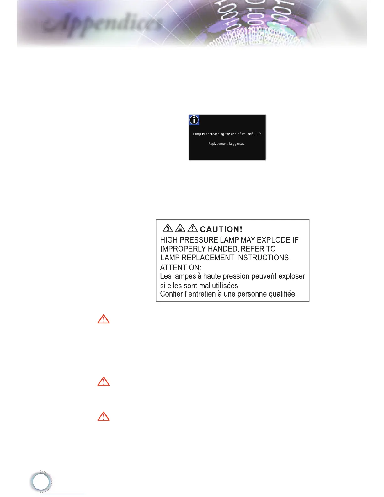 lamp life is nearing the end of use, you will receive a warning