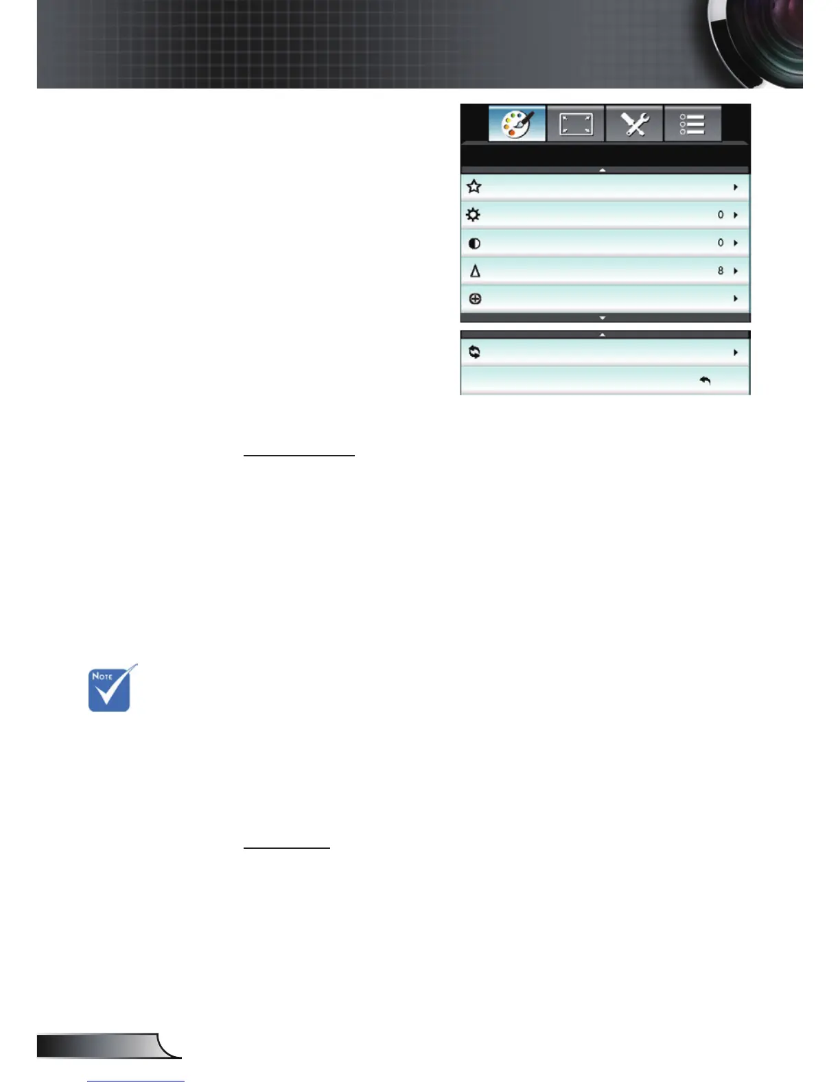 color temperature, brightness, contrast and gamma settings are