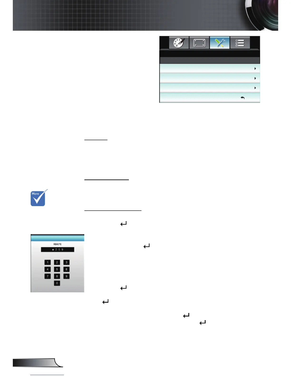 Use number button on the remote to enter your new password