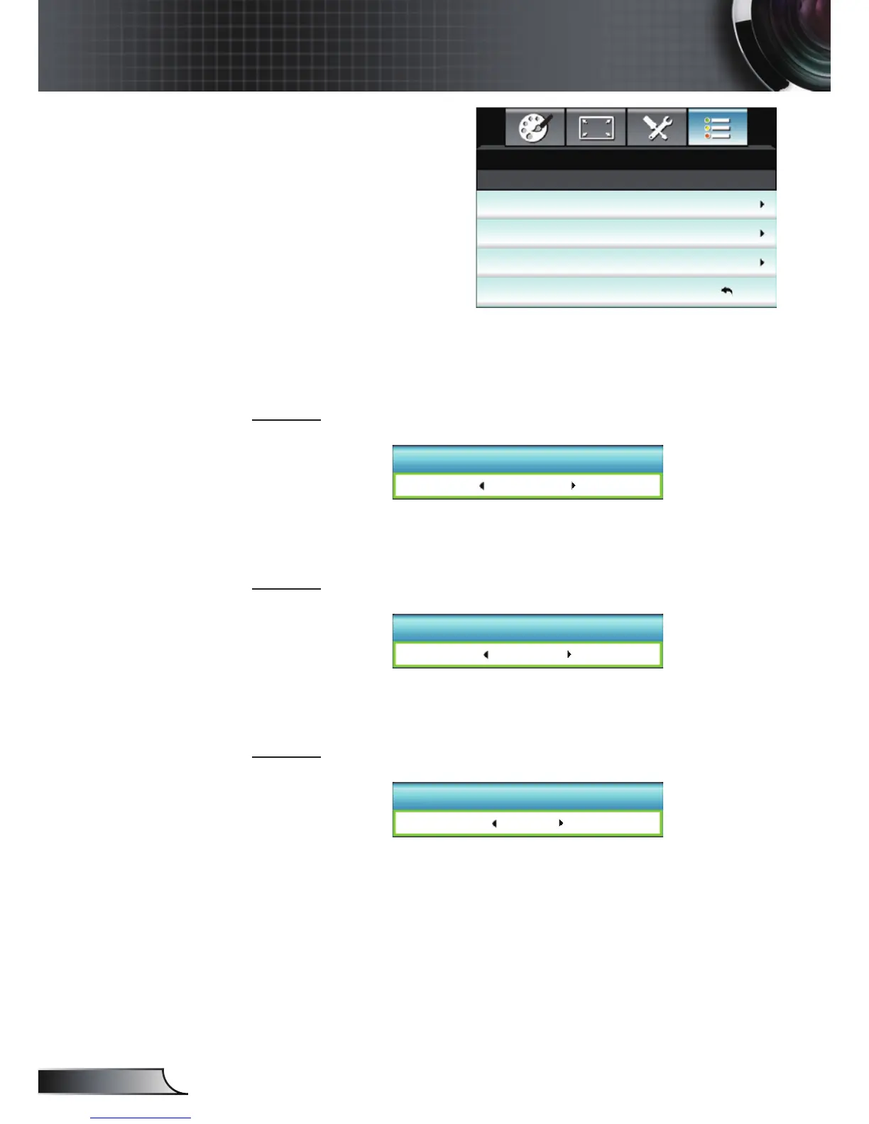 Settings”, “ColorTemp”, “Gamma”, “HDMI Link”, “Test Pattern” or