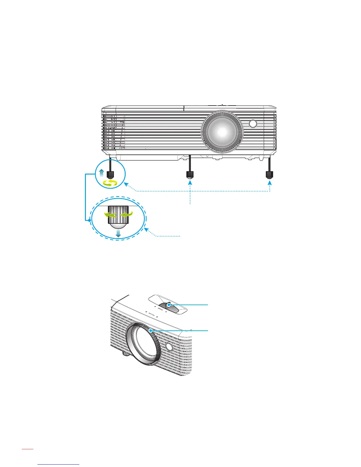 Rotate the adjustable foot clockwise or counterclockwise to raise or lower the projector.2.