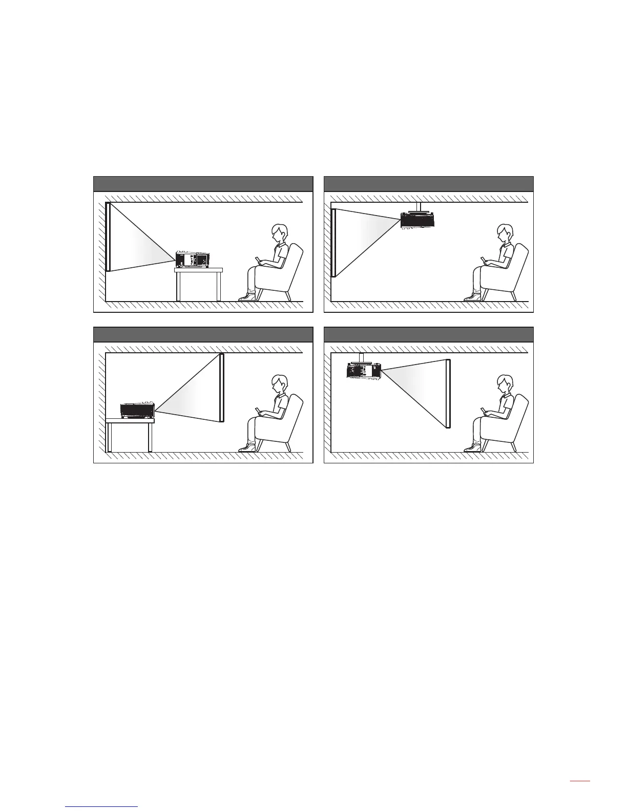 How to determine projector location for a given screen size, please refer to distance table on page 58.