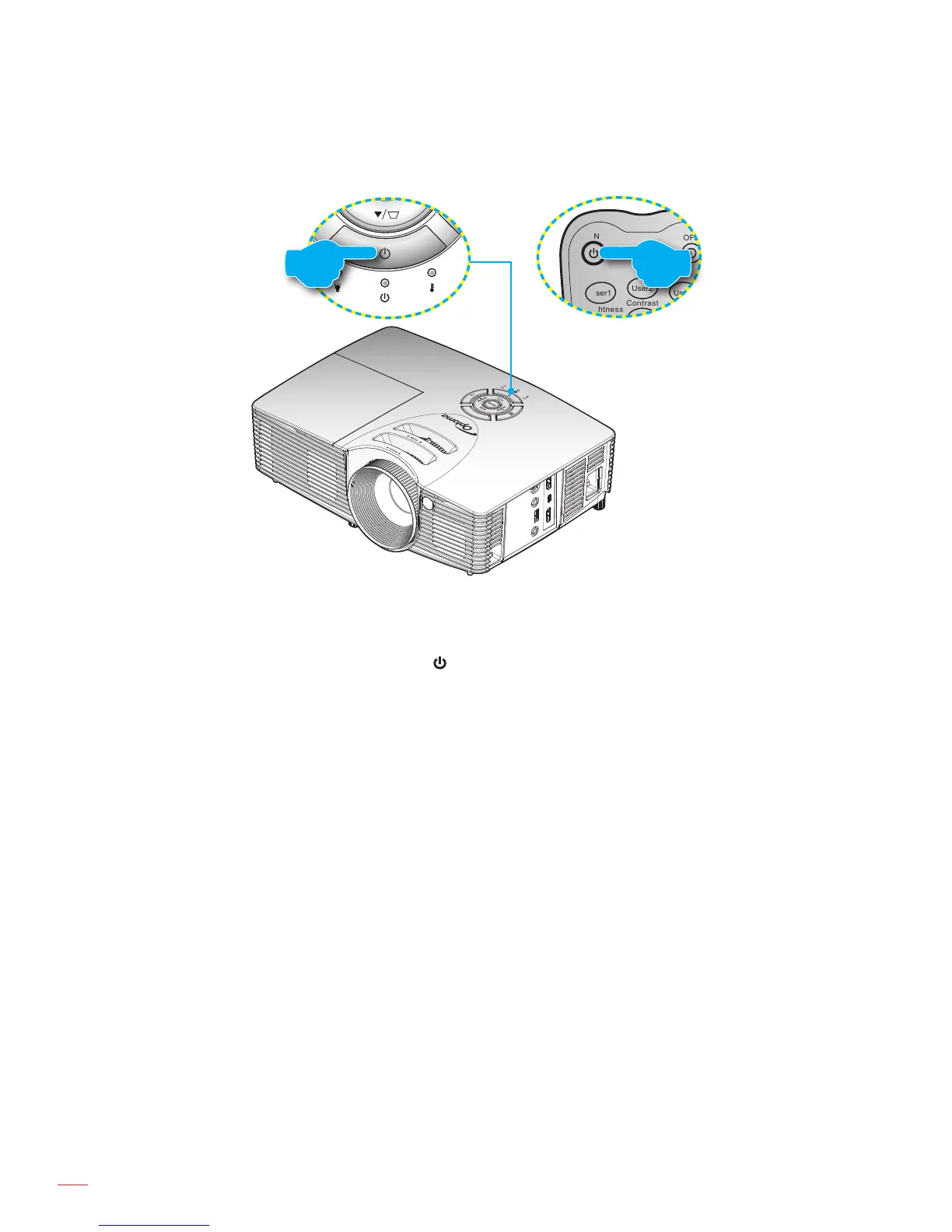 Turn on the projector by pressing the 2. " " either on the projector keypad or the remote control.