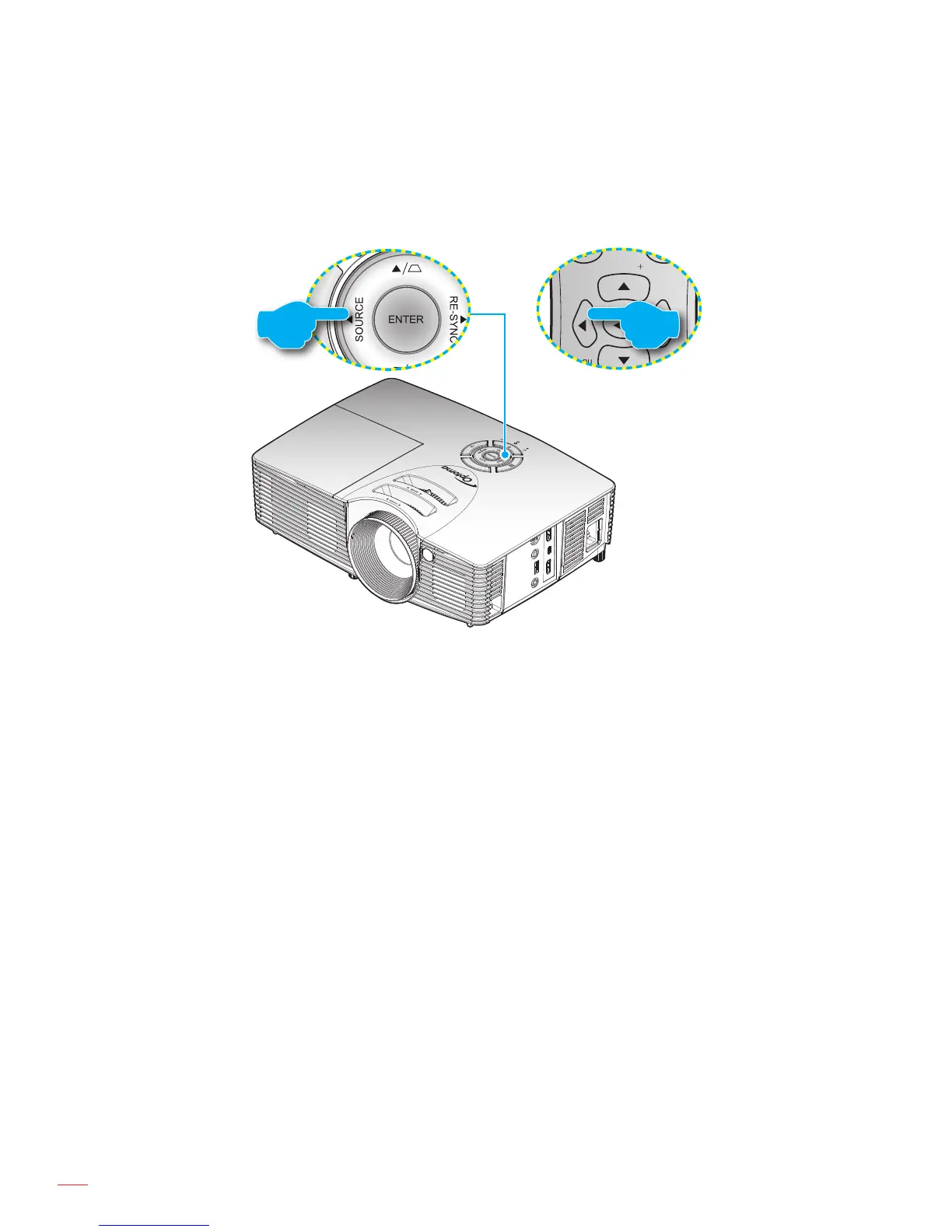 etc. The projector will automatically detect the source. If multiple sources are connected, push the Source button on