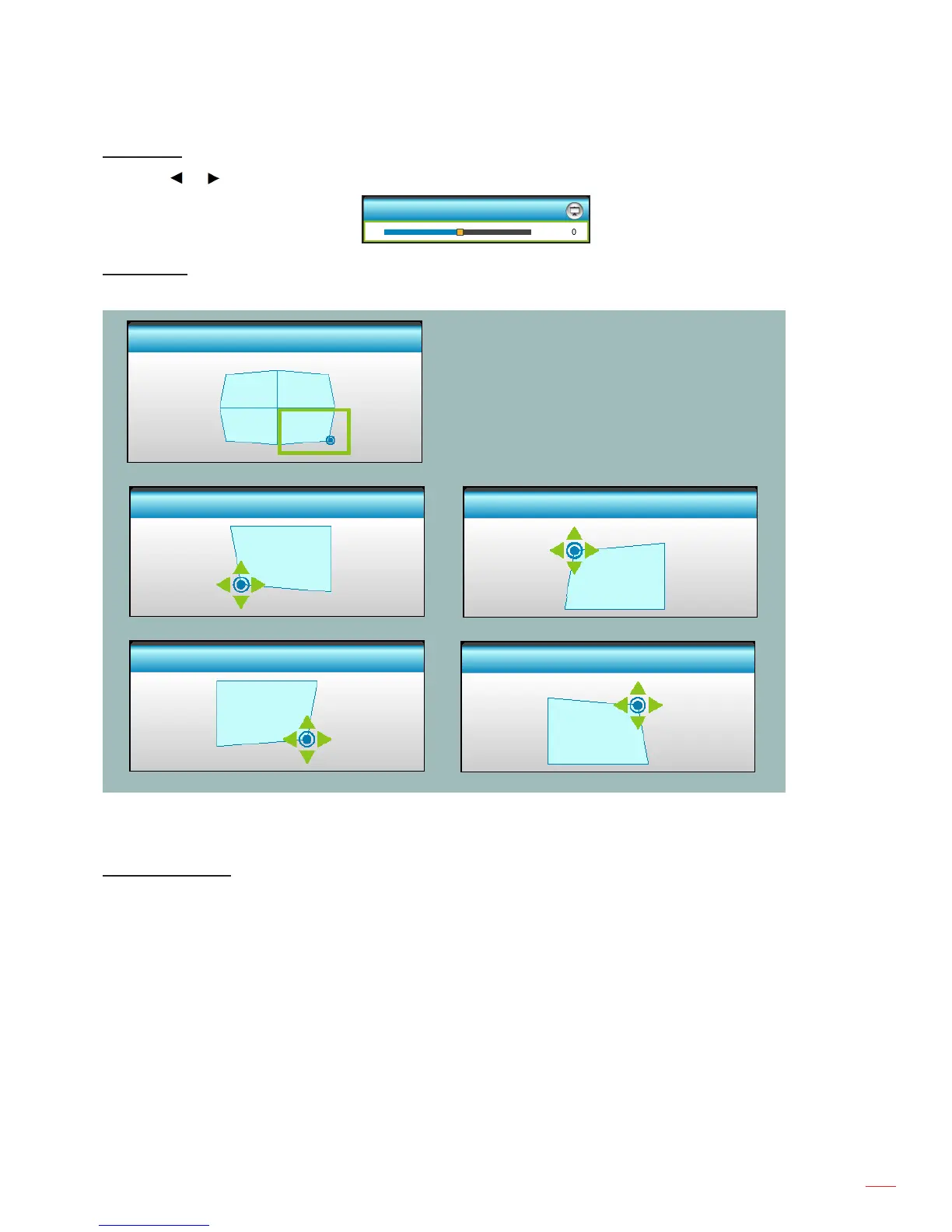 Compensate for image distortion by adjusting one corner at a time.
