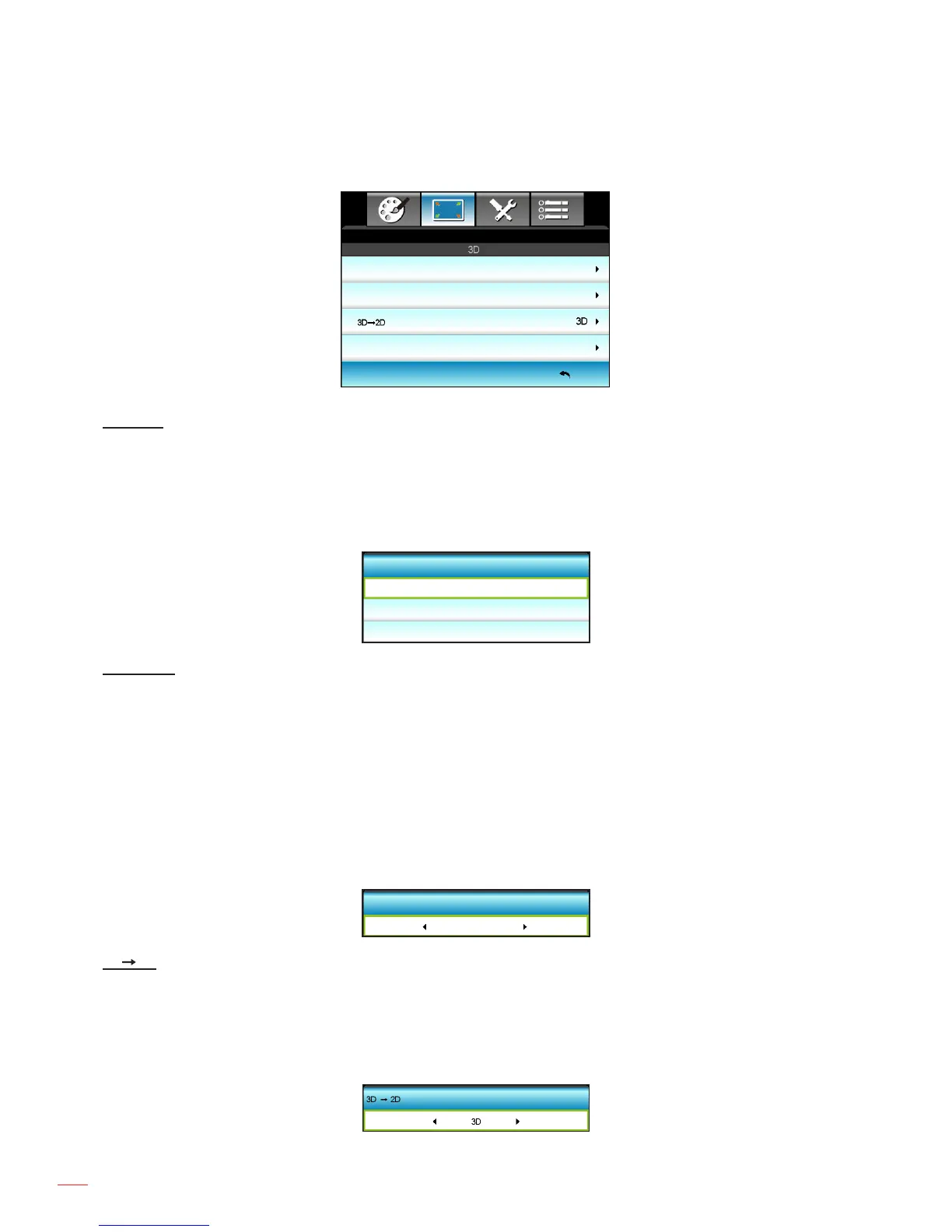 Auto: When a 3D identication signal is detected, the 3D format is selected automatically.