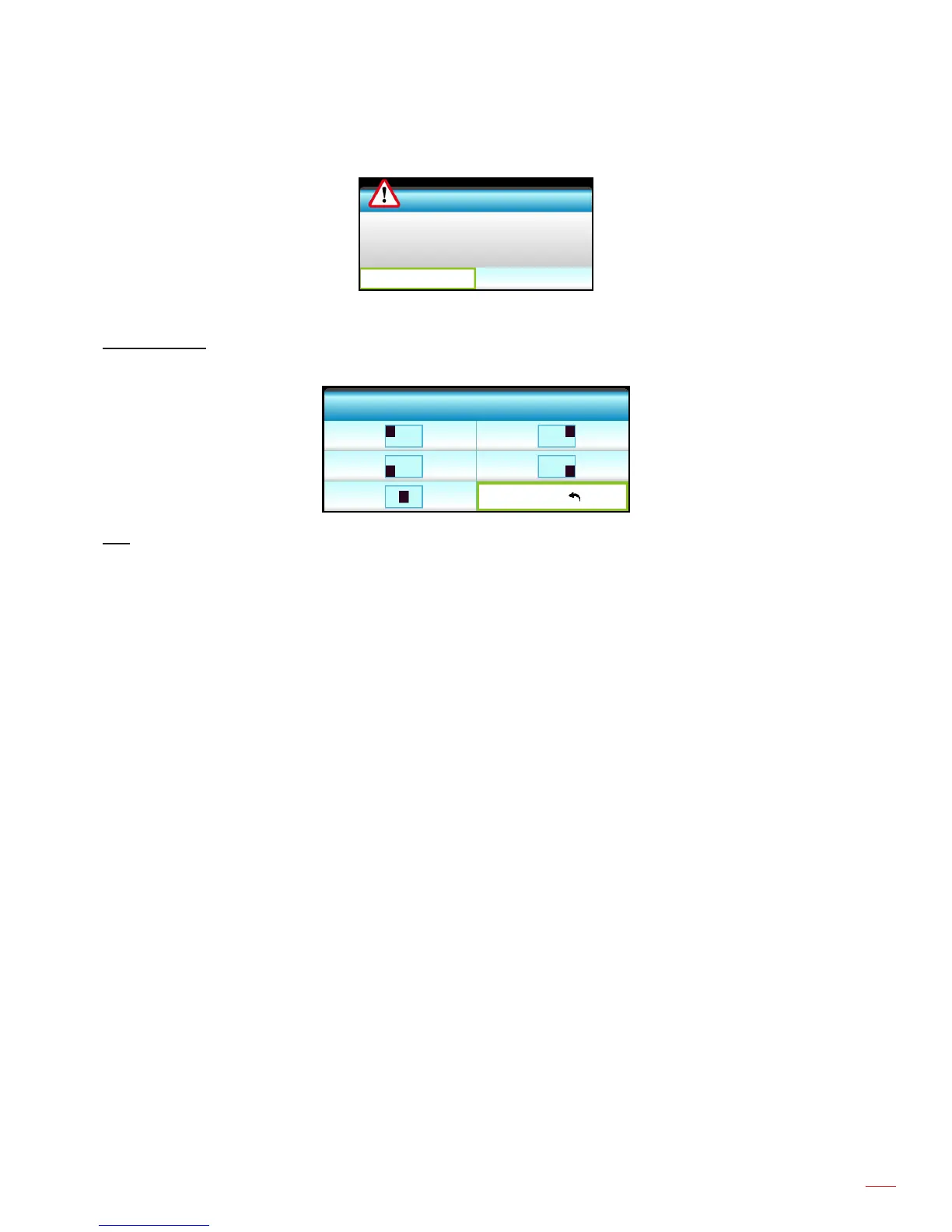 Rear-Desktop and Rear-Ceiling are to be used with a translucent screen.Note: