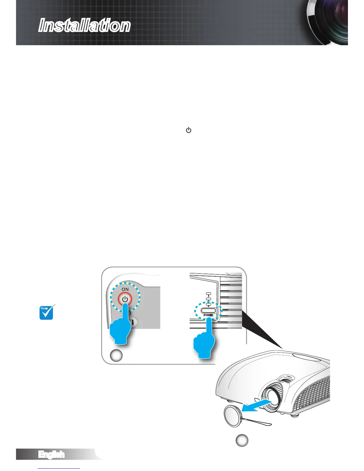 projector or pressing “ ” button on the remote control. The Power